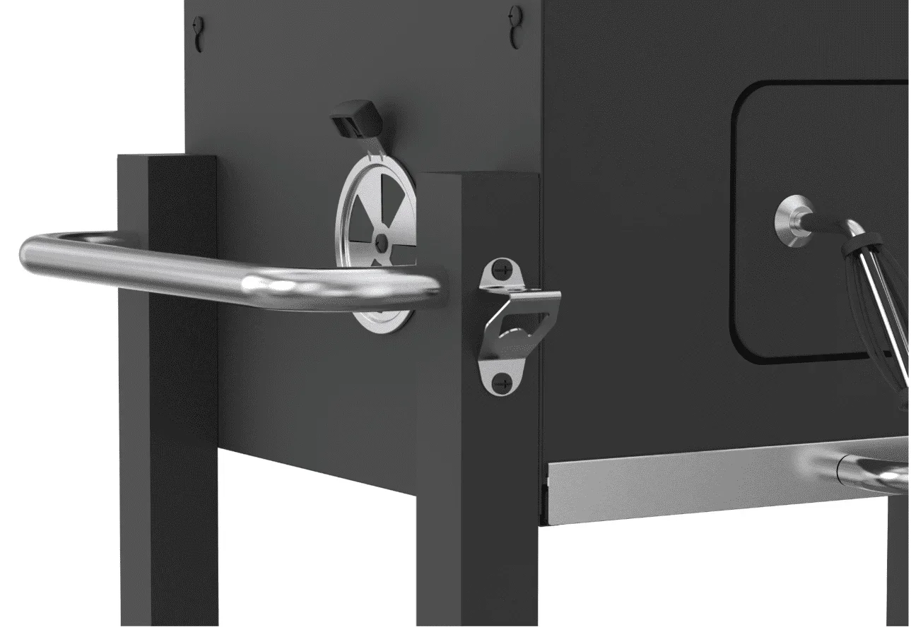 - Adjust charcoal pan height with crank to customize cooking temperatures