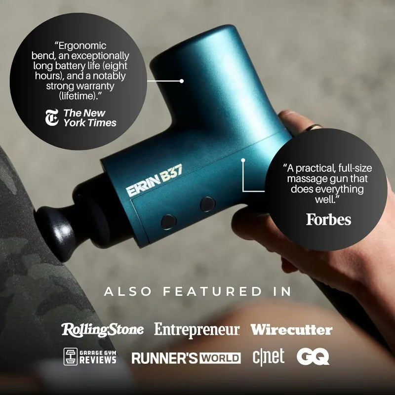 - Professional-Grade Electric Massager: Equipped with a powerful level 3 brushless motor, the B37 massage gun delivers a potent deep tissue massage. Its unique 15° angled handle allows better reach, making it an ideal back massager for pain relief and less arm fatigue.