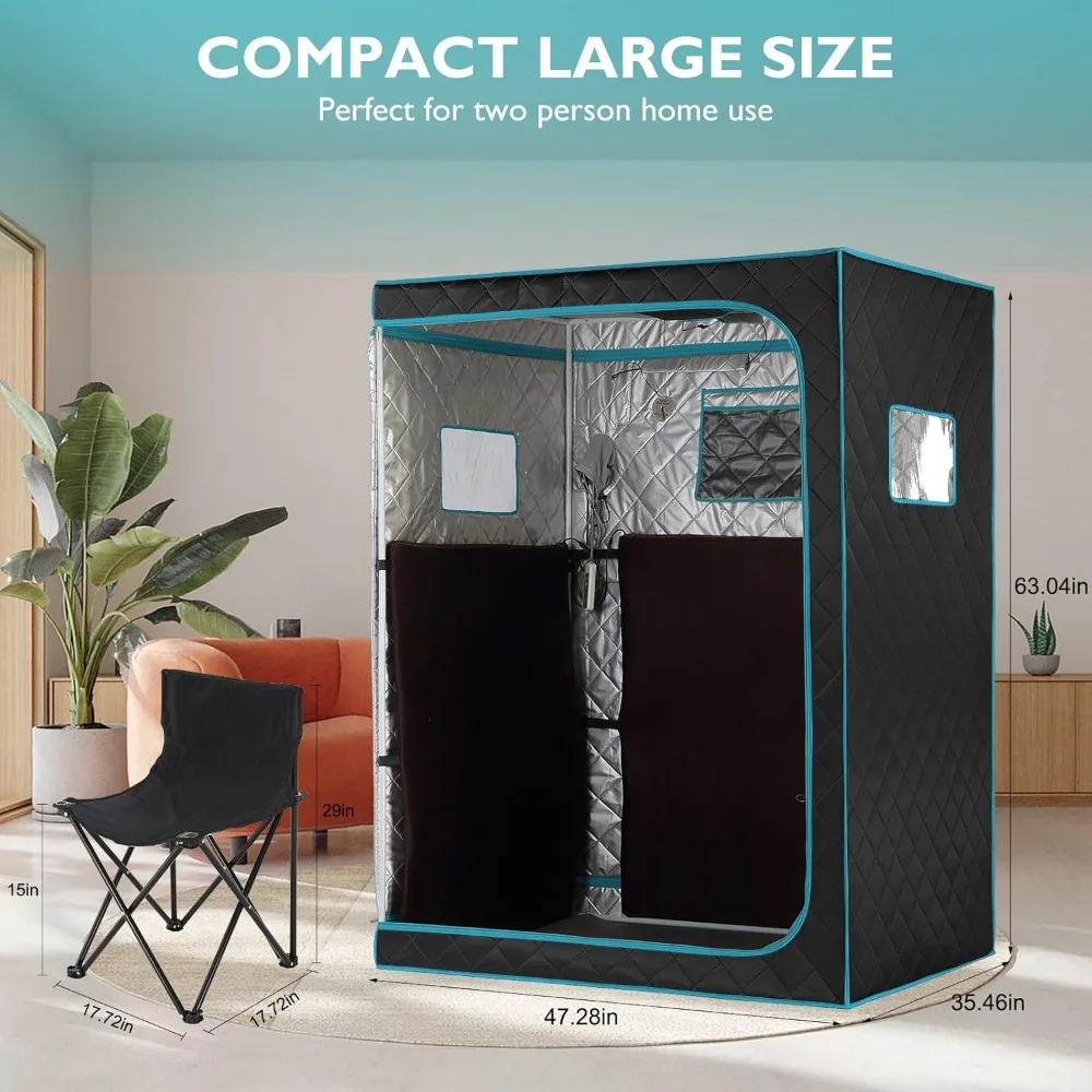 Portable Far Infrared Sauna, Home Two Person Sauna Box with 660nm Red Light Therapy Lamp, X-Large Full Size Indoor SPA Tent for Body Recovery, Remote Control, 2 Folding Chairs, Blackgreen