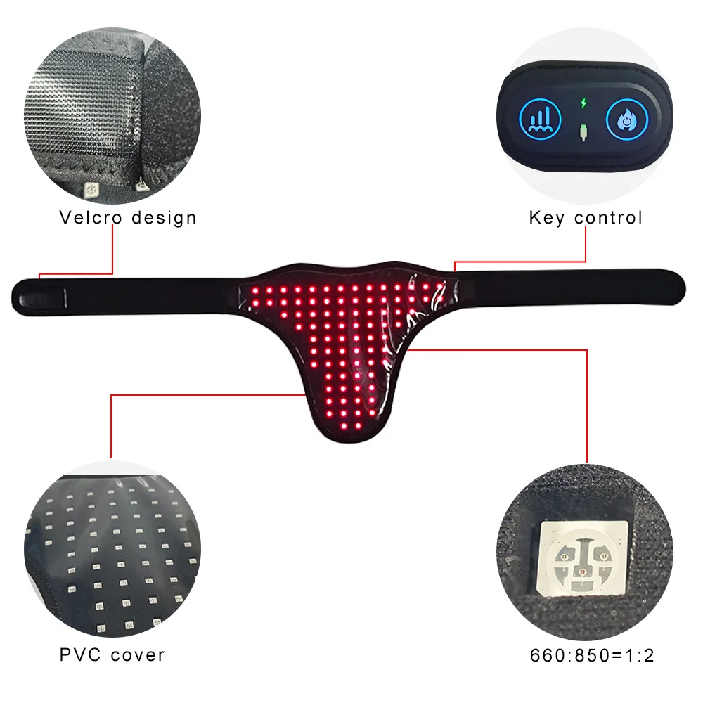 Red Light Therapy Belt 660nm & 850nm Heating Massage for Prostate Therapy Device Abdomen Hand Pain Relief Hormonal Balance USB-C